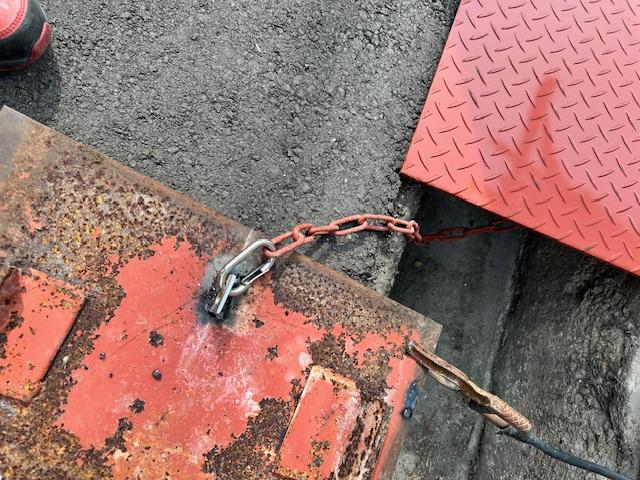 ホームページからの依頼で溝蓋が、盗難に遭い 制作設置の発注いただきました。今回は盗難防止の為 鎖で繋いでの処置設置させて頂きました。iPhoneから送信